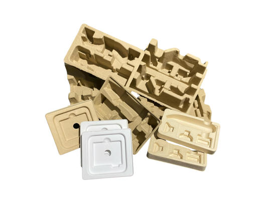 Wet pressing Molded Pulp Tray. Wet pressing process is a new type of modern technology, which is widely used in insert &inner tray packaging options. Molded pulp products made from 100% biodegradable & compostable material, sugarcane fiber (as known as bagasse), bamboo fiber, wood pulp, recycled paper pulp and other natural plant fiber.